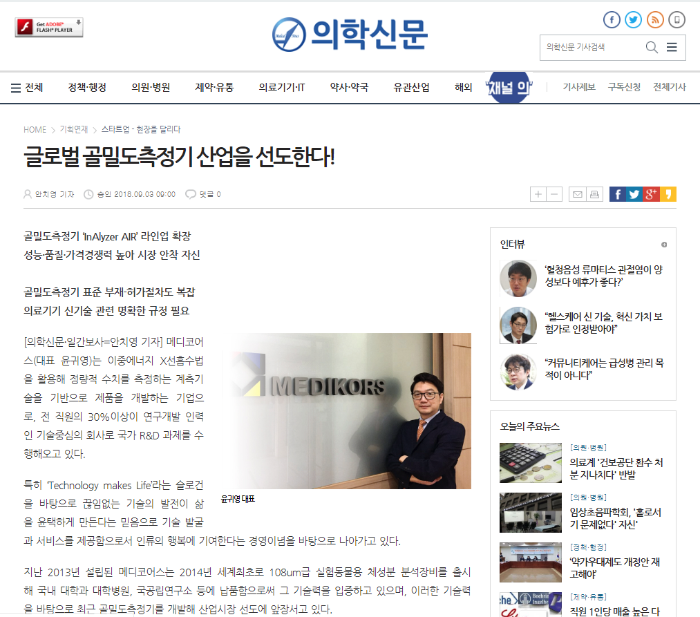 At MEDIKORS Inc. (CEO: Killian Yoon) Over 30 % of the staff are researchers. As a technology-oriented company, we have been conducting various national R&D projects. In 2014, we launched the world’s first 108-um body composition analyzer for experimental animals, which is being supplied to universities in Korea and abroad, university hospitals, national and public research centers. Based on our technological competences, MediKors secured a high level of precision and radical price competitiveness, with which we entered the human medical equipment market and have been constantly striving to contribute to distributing useful medical diagnosis and analysis technologies. MediKors values infinite challenge, sense of responsibility, craftsmanship and humanity, and strives to discover technologies and provide products and services that enrich human life and happiness, with creative and honest staff. Under the slogan, ‘Technology makes life’, we believe constant development of technology enriches human life and try to provide a variety of high-tech products and services that are easy to use. We promise to make an effort to enrich lives and provide cutting-edge technology product and service with reckless technology development under the slogan, “Technology makes Life.”