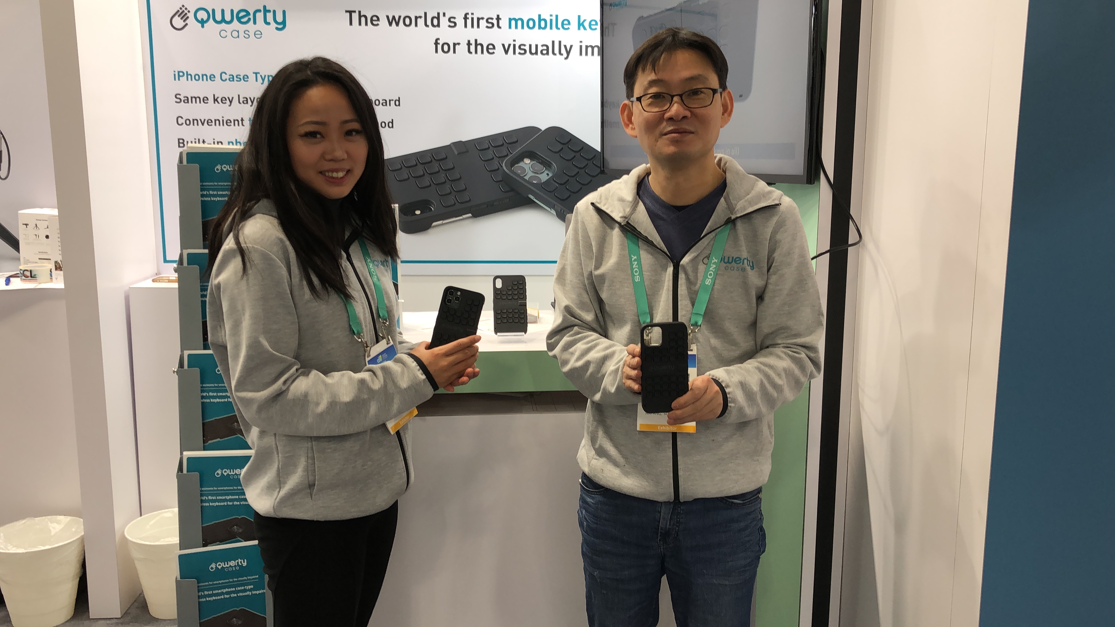 Qwerty-Case is a smartphone case-type wireless keyboard that helps the visually impaired to type text or dial when using a smartphone