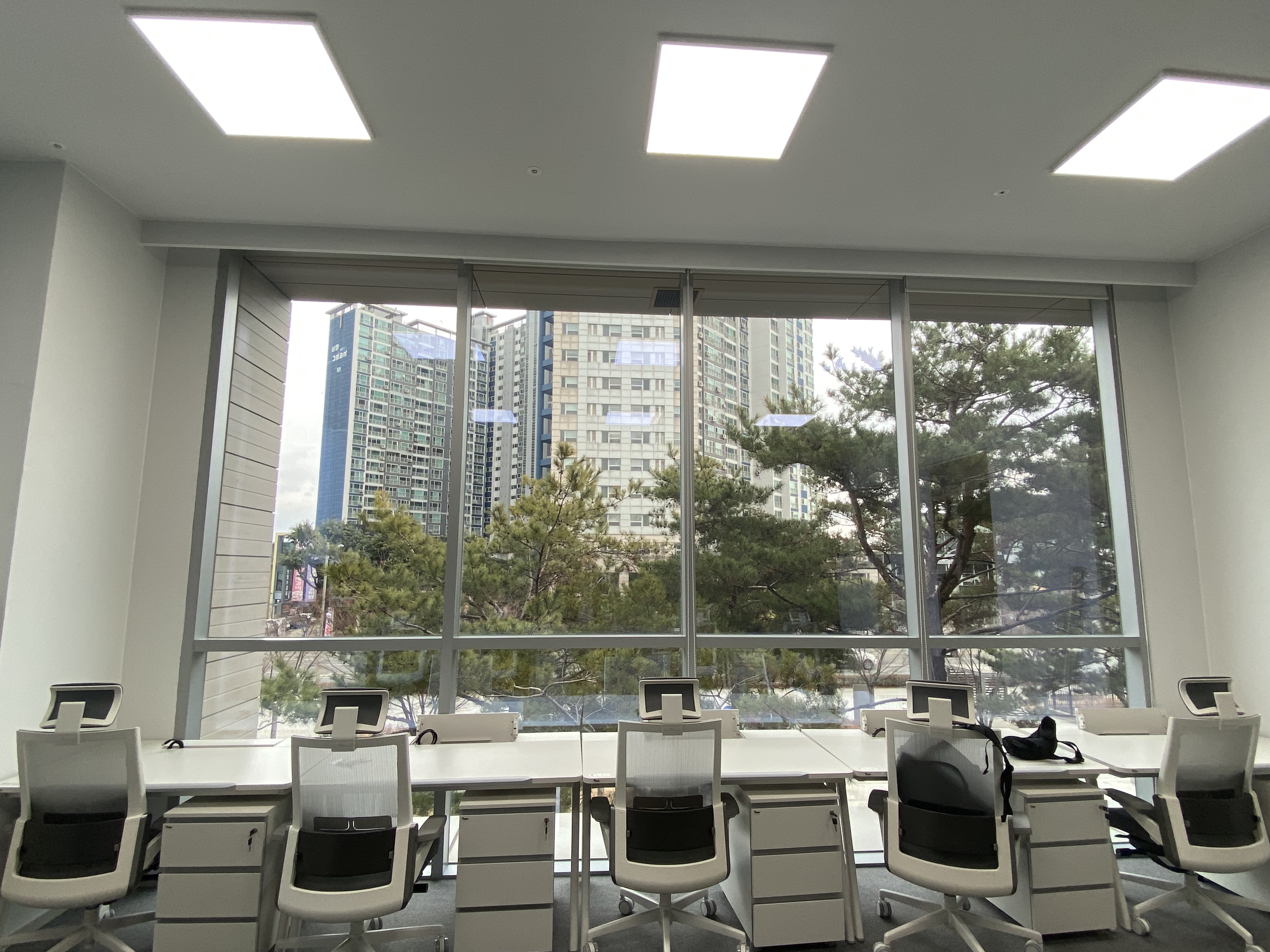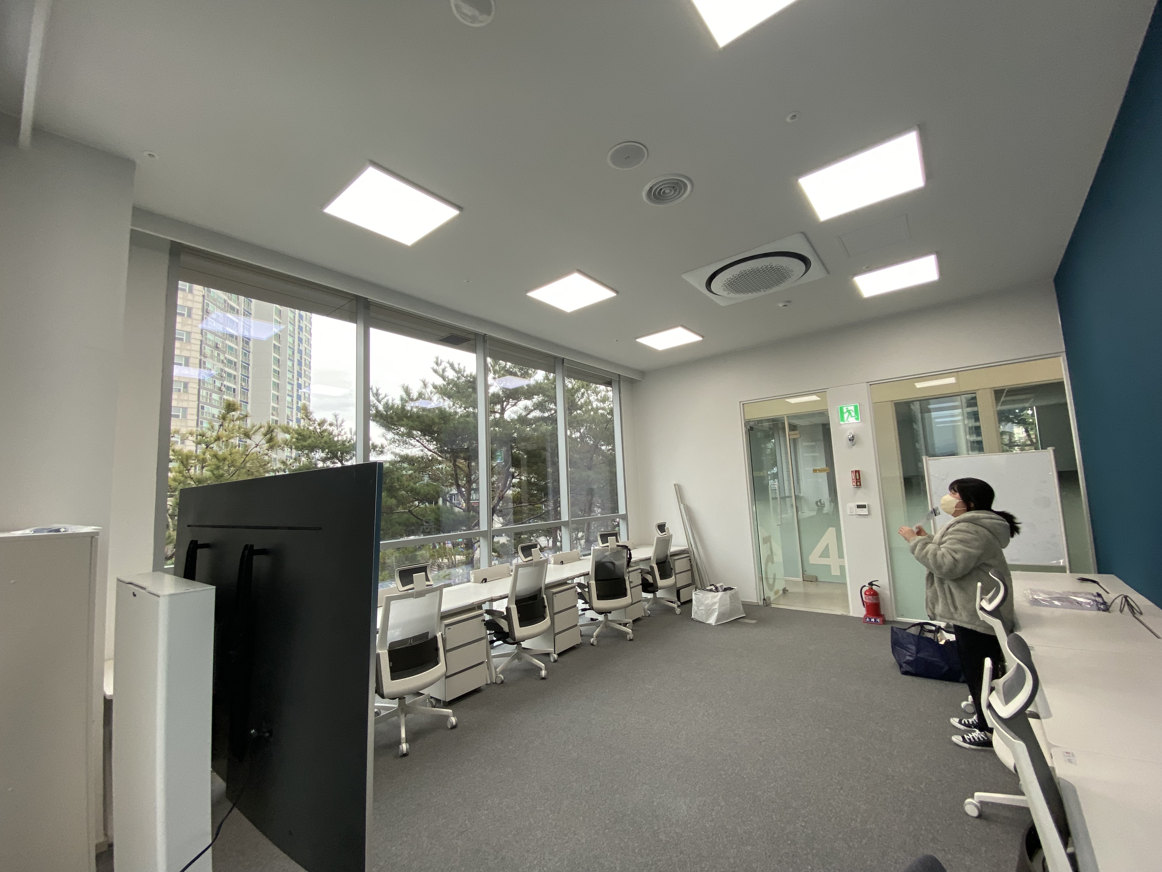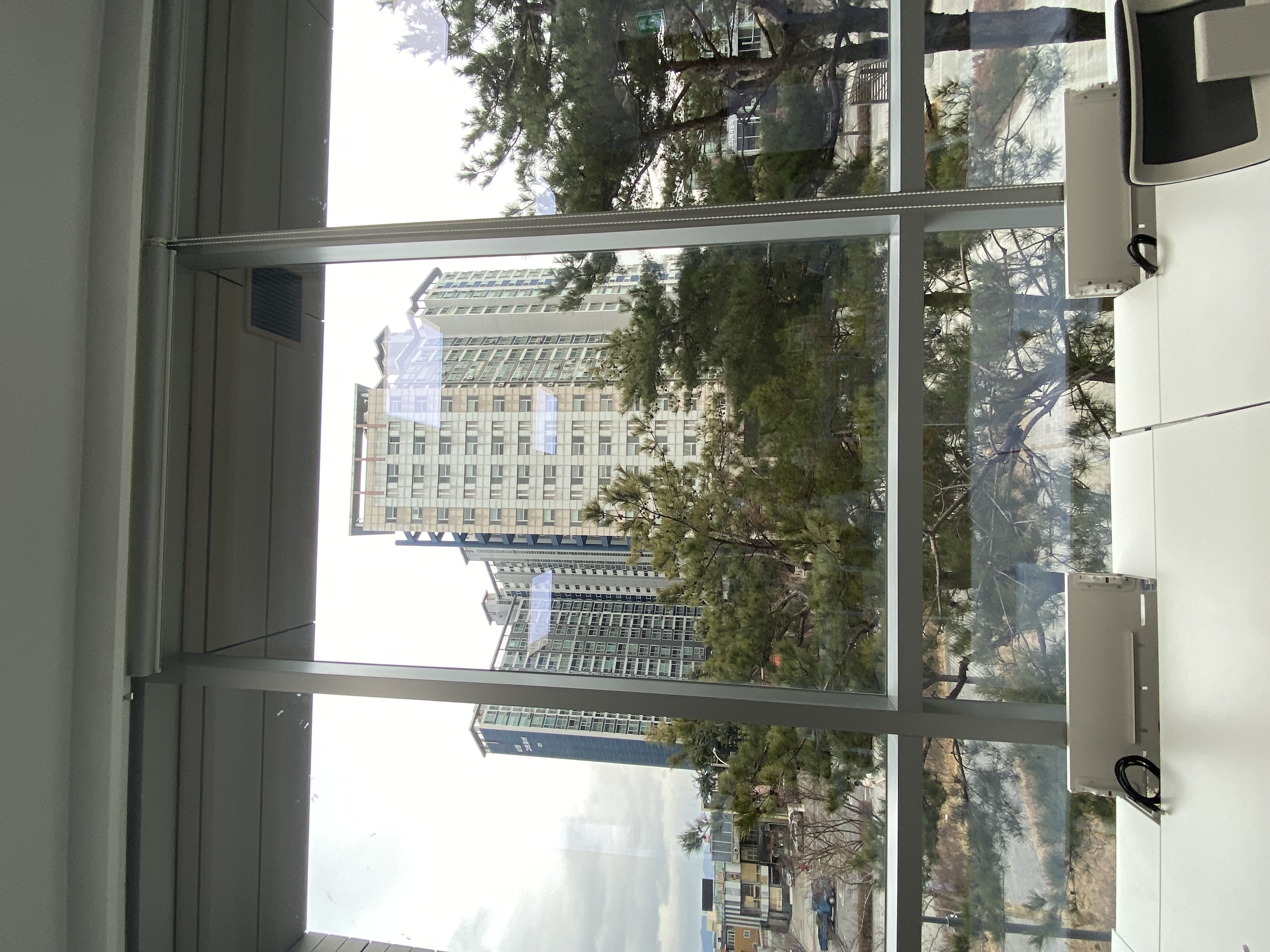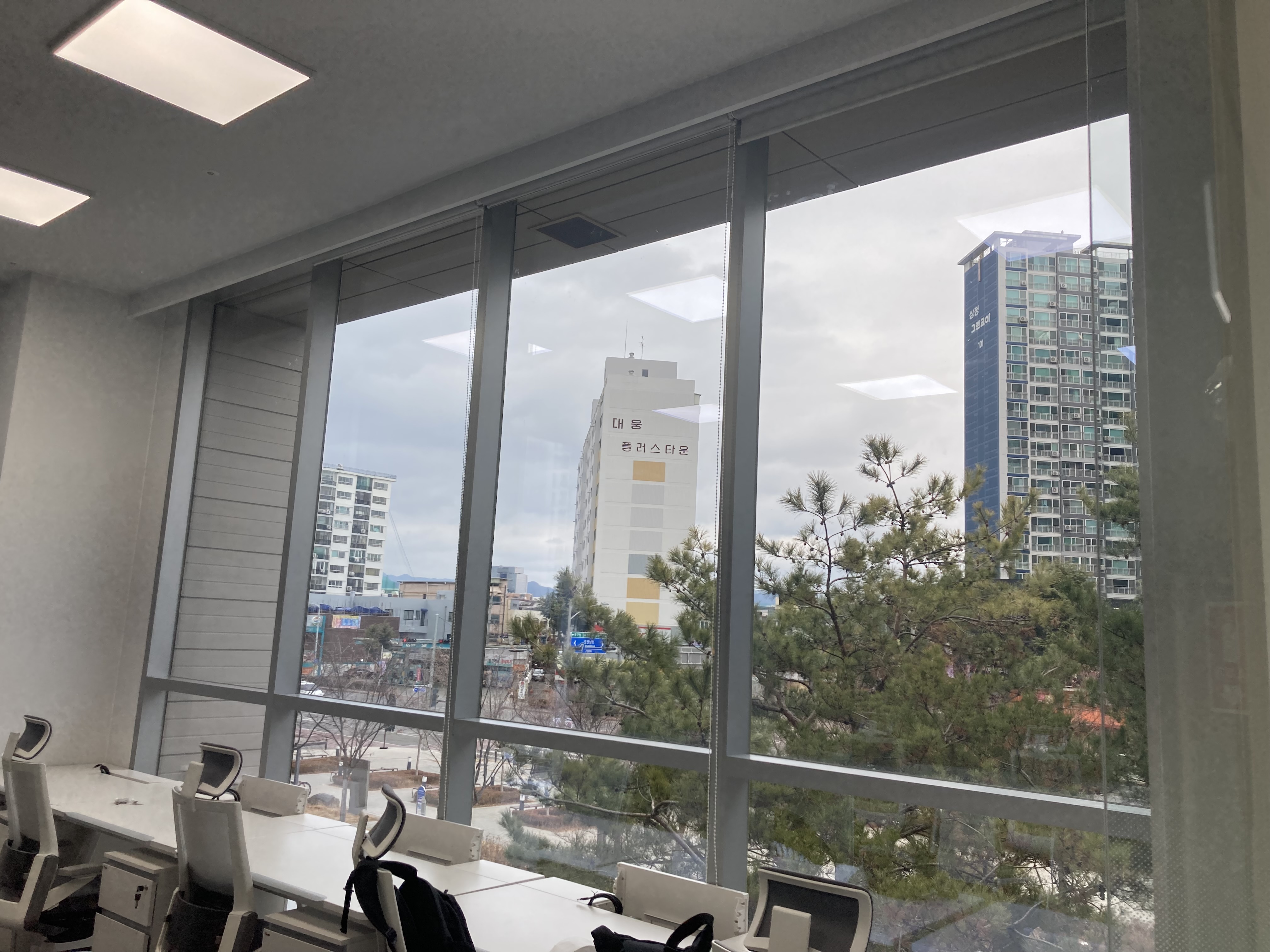 By attaching PDLC film with high permeability (permeability of 80% or higher) of view, the heating and cooling load can be lowered, and it can be used as a blind and beam project screen in opaque mode.